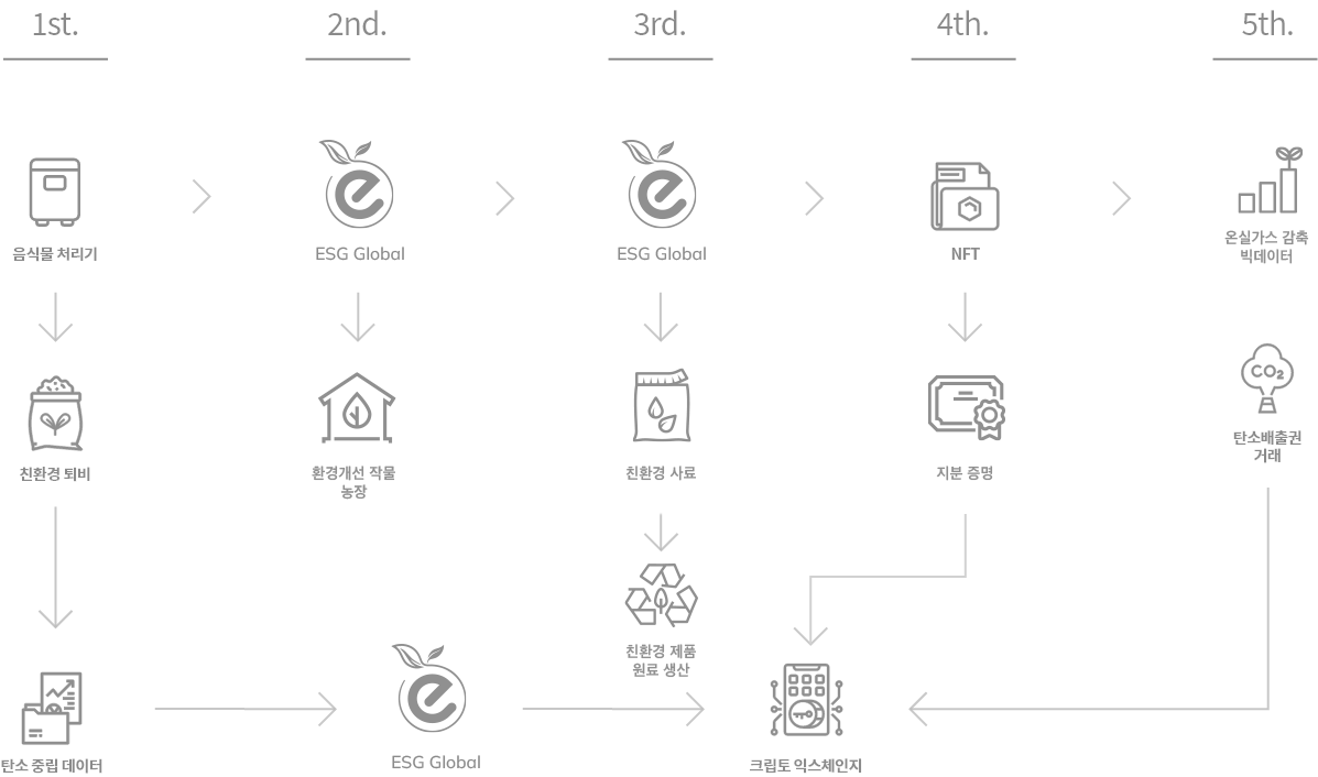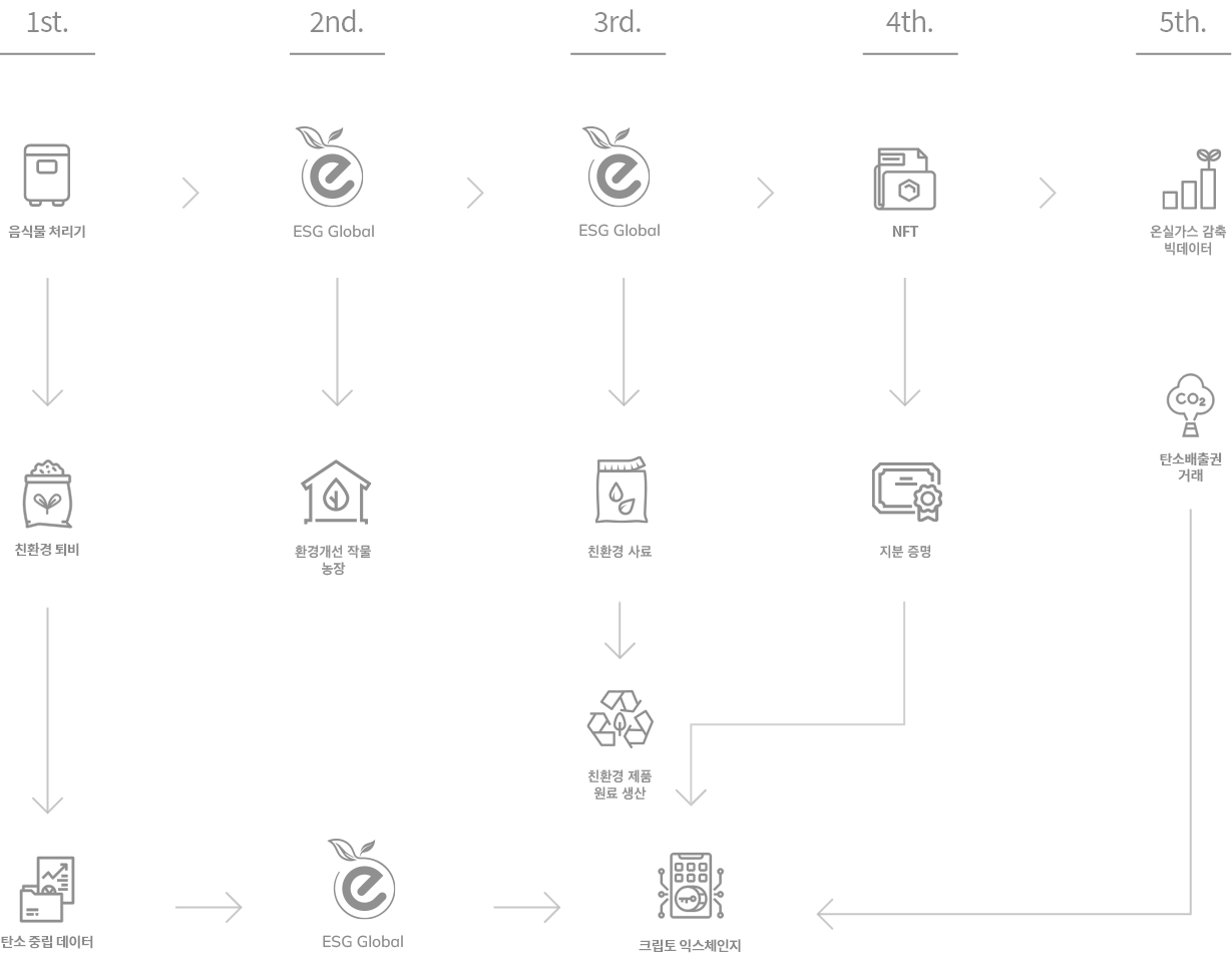 Through the carbon neutral app, we collect data that have been implemented to reduce greenhouse gas emissions in our lives and compensate and support them with ESGG. ESGG can gain exchange value through transactions between individuals as well as a variety of uses.